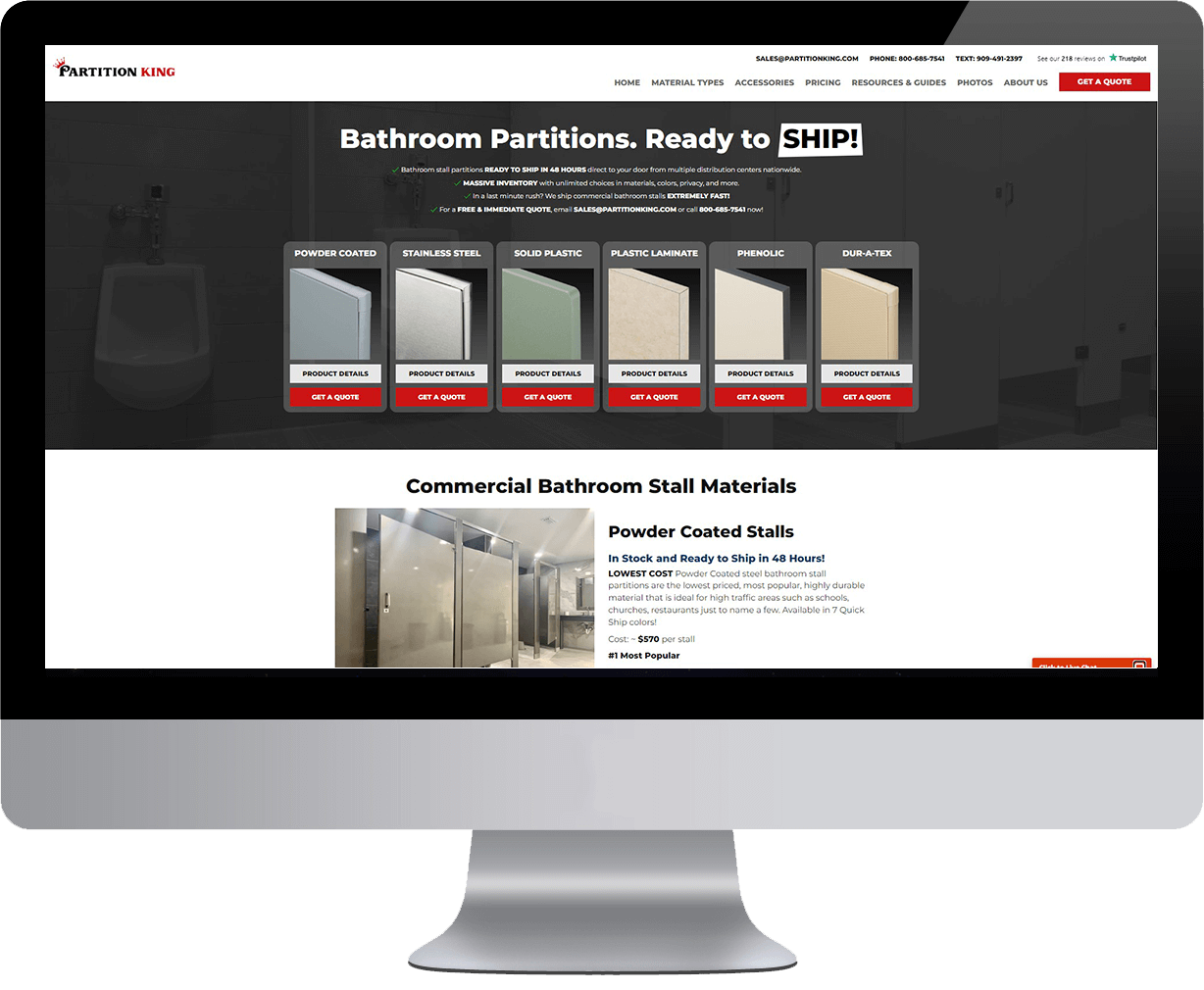 Partition King is an ecommerce distributor of toilet partitions and washroom accessories for commercial bathrooms.